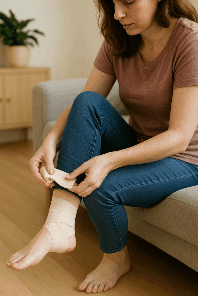 - Compress: Wrap with a crepe bandage (not too tight).