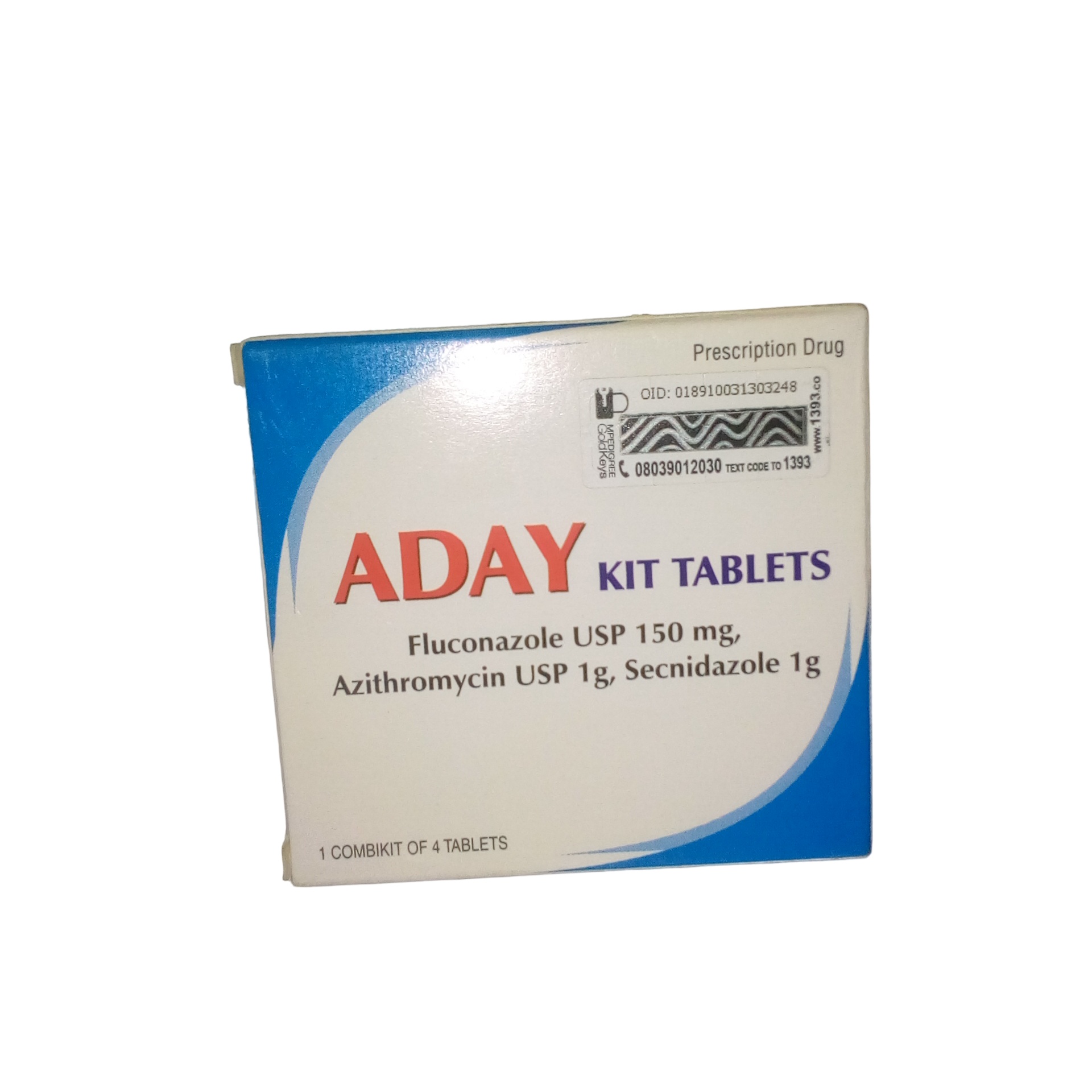 A Day Kit Tablet (fluconazol/ azithromycin/ secnidazol 150/1000/1000mg) is a combination pack containing an antifungal (fluconazole), an antibiotic (azithromycin) and an antiprotozoal (secnidazole) used to treat mixed vaginal infections caused by fungi, bacteria and protozoa, such as candidiasis, bacterial vaginosis and trichomoniasis.