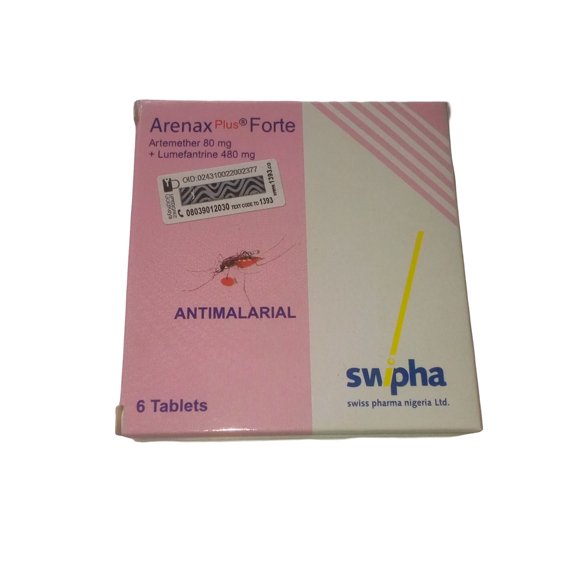 Arenax Plus Forte is a high-strength antimalarial combination therapy containing artemether and lumefantrine for treating acute uncomplicated malaria.