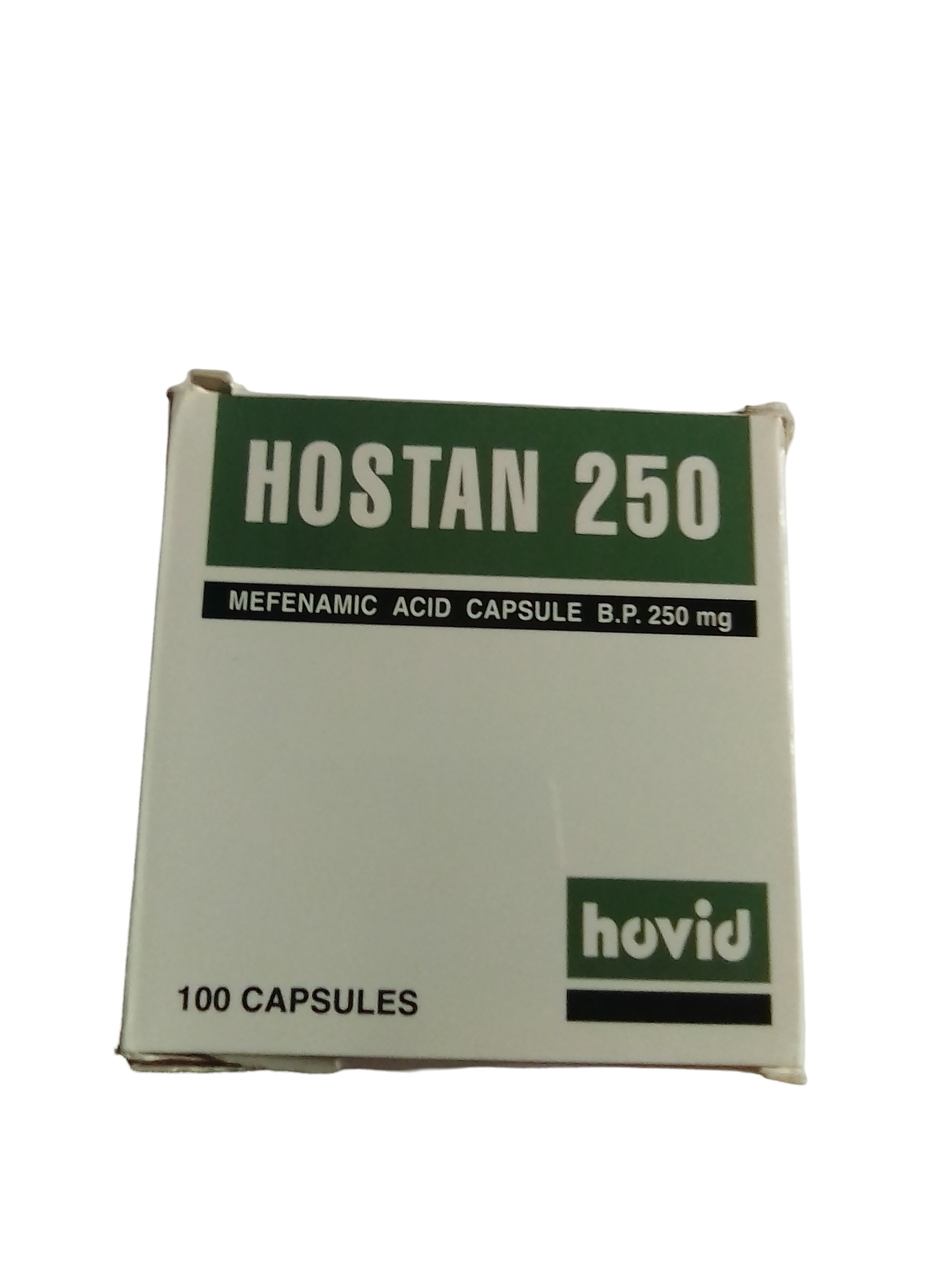 Hostan 250mg Capsule is a nonsteroidal anti-inflammatory drug containing mefenamic acid for pain relief.