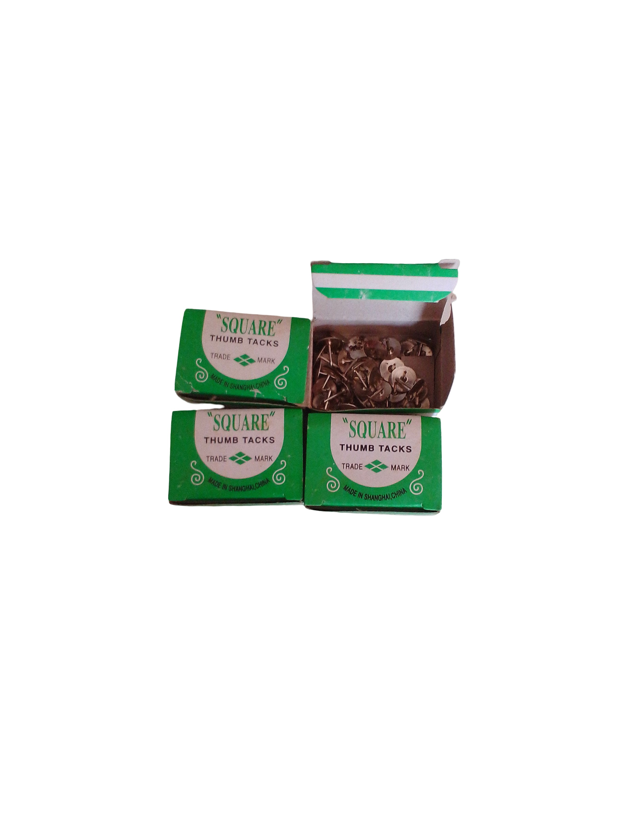 Square Thumb Tacks are push pins with a square head used to attach papers, notes, or decorations to bulletin boards and walls.