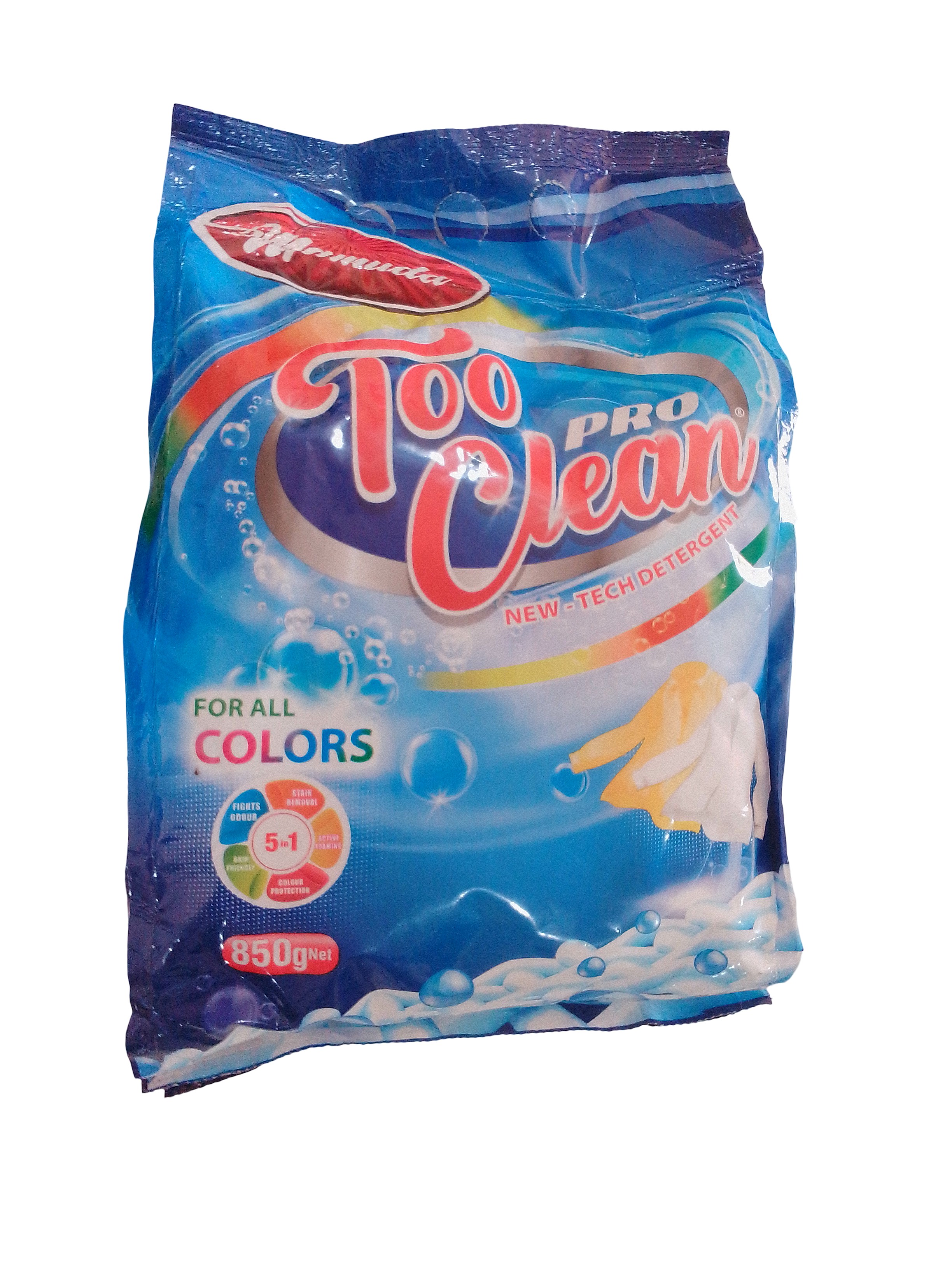 Too Clean Detergent 850g is a larger-size laundry detergent powder suitable for multiple wash loads and household cleaning needs.