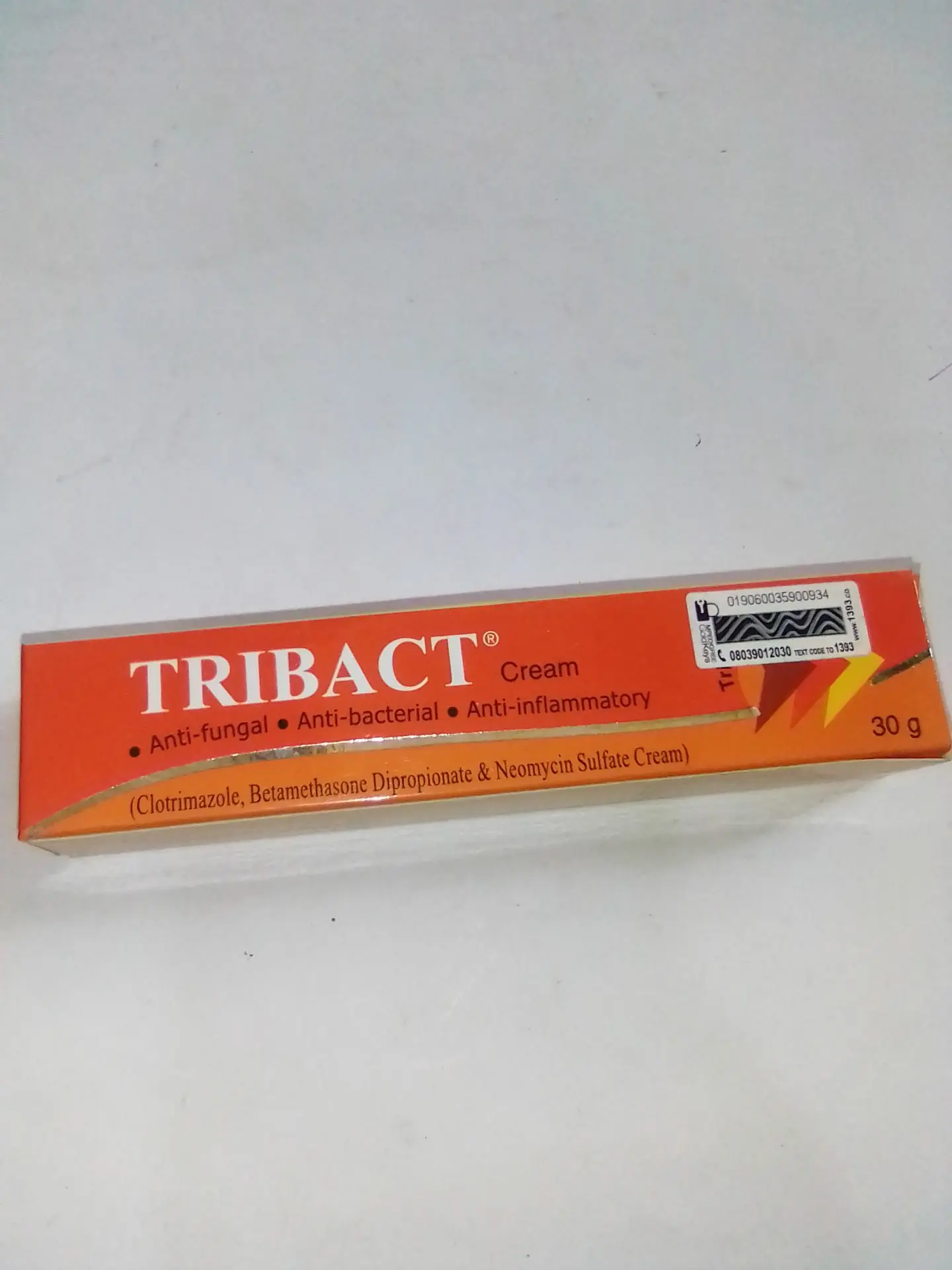 Tribact Cream 30g is a triple-action topical cream likely containing antibacterial, antifungal, and anti-inflammatory ingredients for skin infections.